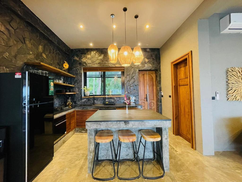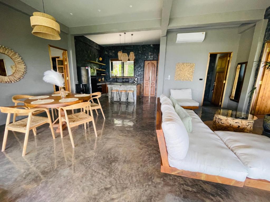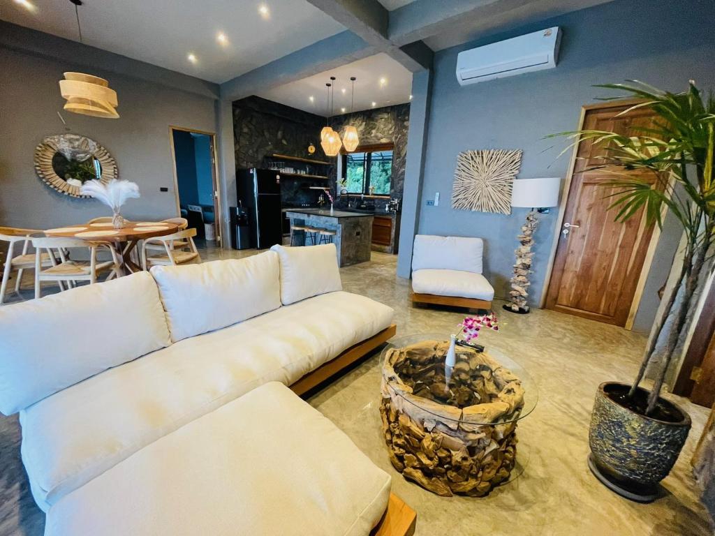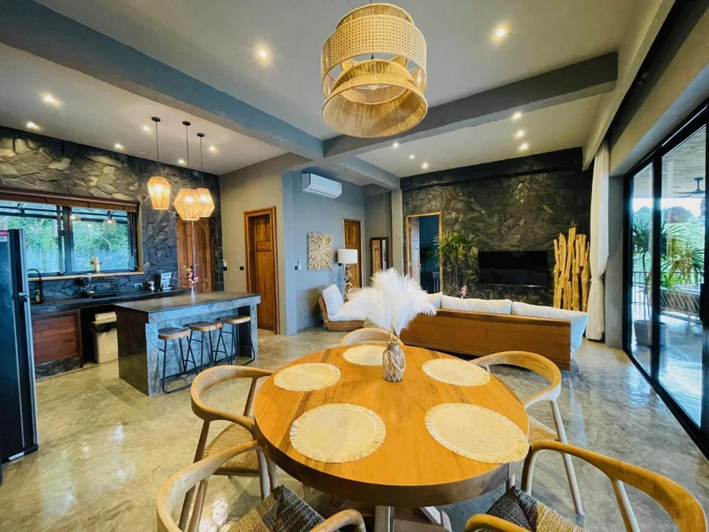 The villas are designed with tropical flair and natural elegance. At the heart of the property lies a stunning 20-meter infinity pool across two levels, complete with a natural rock waterfall. Nestled in lush greenery, this is a place where architecture and jungle blend in perfect harmony.