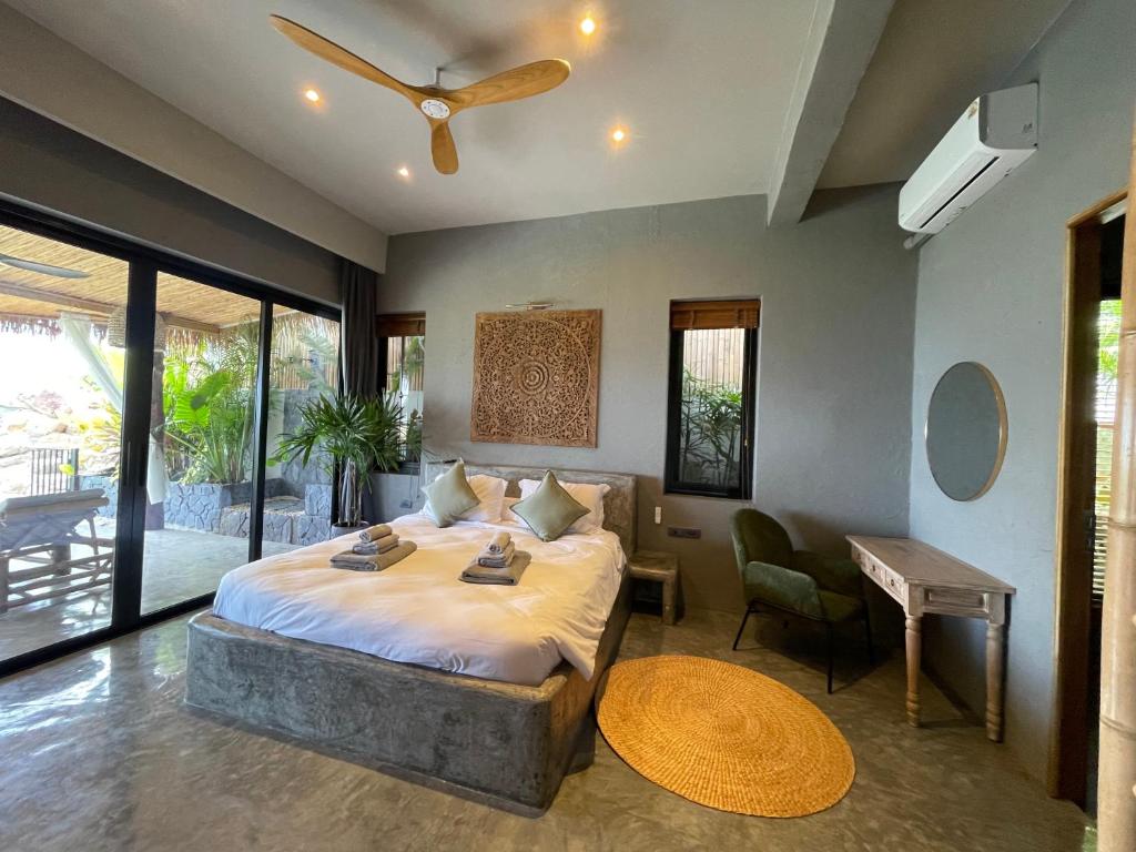 This is a spacious private villa with an expansive terrace and breathtaking sea views. In addition, you’ll have access to the large tropical garden with the waterfall pool and wooden sun deck – created exclusively for the three villas.